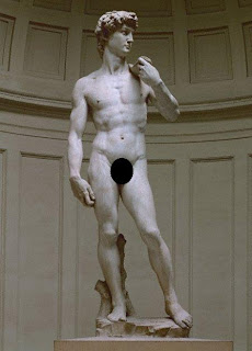 One of the finest works of art the western world has ever produced, Michelangelo’s David is an undisputed masterpiece of sculpture (censored due to blooger possible restrictions). However, to the Vippers he seemed a little plain, and in need of a makeover; you can see their valiant efforts to give him a more stylish look below: